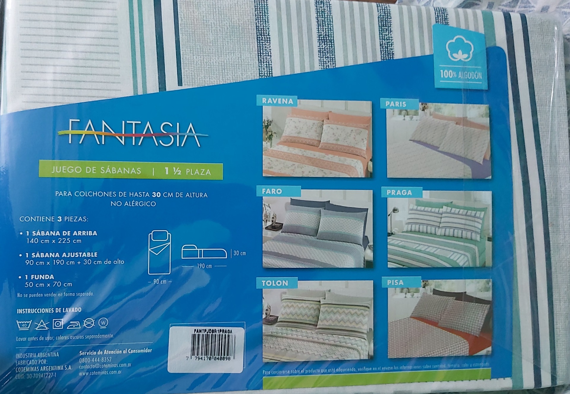 Juego de Sábanas Fantasia 100% Algodón 1 1/2 $